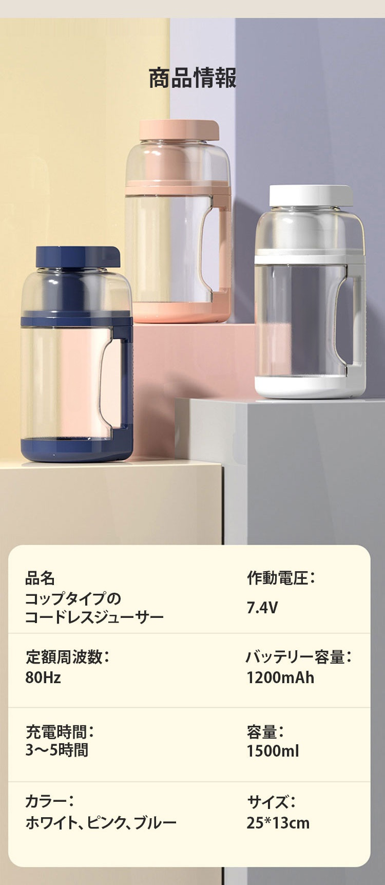 コップタイプのコードレスジューサー